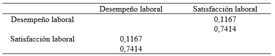 Correlación entre las variables desempeño y satisfacción laboral.