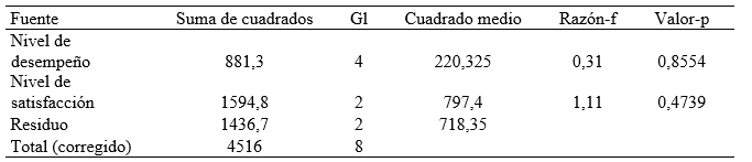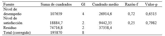 Análisis de varianza para desempeño laboral.