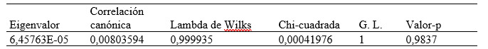 Correlación canónica entre las variables satisfacción laboral y desempeño docente.