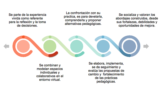 En el desarrollo de este proceso formativo se articularon varios momentos de análisis y reflexión que permitieron a los profesores participantes mirar con detalle su quehacer, y se los invitó, por medio de diversas actividades virtuales, a sistematizar las reelaboraciones construidas y las posibles formas de transformar sus prácticas didácticas.