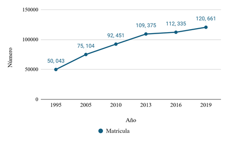 Figura 2: Nota: Crecimiento de la matrícula Los datos corresponden a todos los programas de licenciatura y técnico superior universitario. Corte a enero 2019.