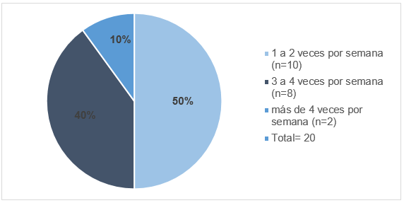 Las características del ejercicio pre gestacional en cuanto a frecuencia semanal, minutos y tipo de actividad física, se muestran en el gráfico 2,3 y 4.