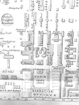 Figura 11: Extracto de plano de distribución de los exhibidores en el Crystal Palace en pasillo central.1851.