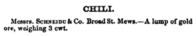 Figura 12: Descripción del objeto exhibido por Chile. “Official Catalogue of the Great Exhibition”. Royal Commission. London: Spicer Brother, Wholesale Statio-ners; W. Clowes and Sons, Printers, 1851