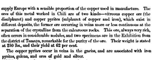 Figura 13: Descripción del origen de los objetos de cobre exhibidos en Londres. “Reports by the Juries on the Subjetcs in the Thirty Classes. Great Exhibition of the Works of Industry of All Nations”.