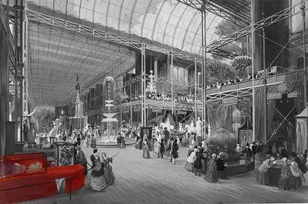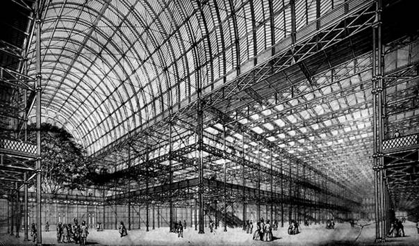 Figura 9: Vista interior del Crystal Palace mostrando la libertad del espacio e intensidad de la luz natural producida por la estructura modular metálica y los paneles de cristal.