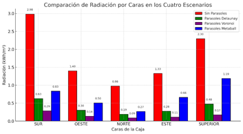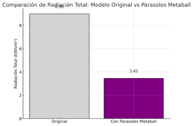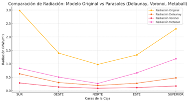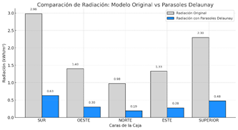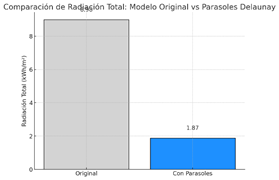 Figura 8: Comparación de Radiación: Gráfico que muestra la reducción de radiación tras aplicar los Parasoles Delaunay.