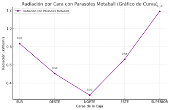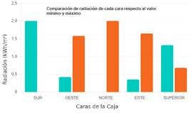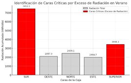 Figura 17: Radiación por Cara: Distribución de la radiación en cada cara de la caja utilizando los Parasoles