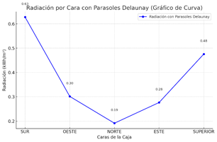 Figura 7: Radiación por Cara: Distribución de la radiación en cada cara de la caja utilizando los Parasoles Delaunay. Fuente:
