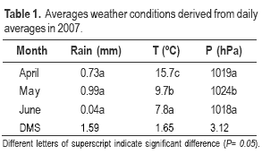 During the post harvest period, during May and June, the conservation was made to mean temperatures 15.7 to 7.8 °C. Thermal values means were similar to their historical averages. There were a major number of days with intense frosts in relation to previous years. From April to June, climate was extremely dry, being the rainfall in June just 8% of the historical average (Table 1).