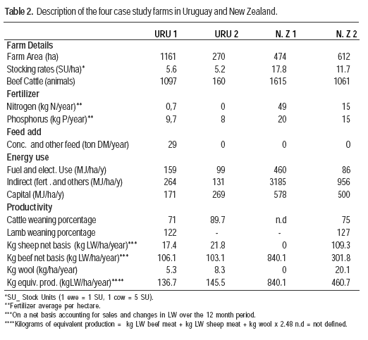 Four farms were selected; one New Zealand beef only system (NZ 1) and three beef and sheep systems (two Uruguayan and one New Zealand URU 1, URU 2 and NZ 2, respectively).