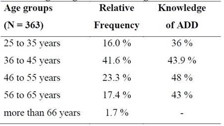 Table 1: Age ranges and knowledge of the advance directive document (ADD)