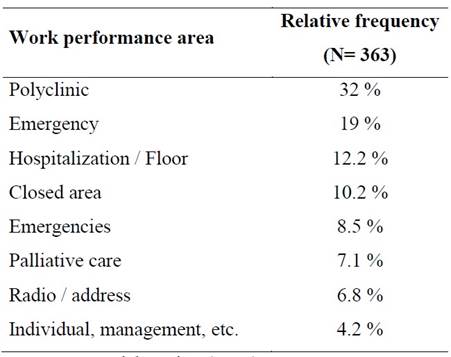 Information was requested to evaluate the knowledge about the advance directive document and its use, the area of professional performance, the care of patients in their workplace and if they had filled out the advance directive form for themselves.