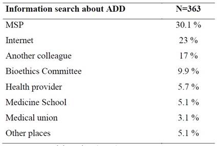 Se obtuvieron 363 respuestas, con un 97 % de profesionales que atendían enfermos, un 79,5 % no habían extendido el documento y más del 50 % no tenía conocimiento de la ley.