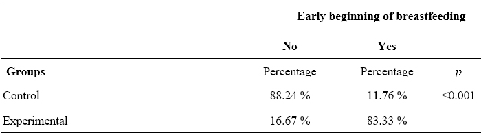 There was an increase in knowledge after the educational intervention (p<0.05) and 83.33% of the pregnant women who belonged to the experimental group started breastfeeding early after the intervention (p<0.001).