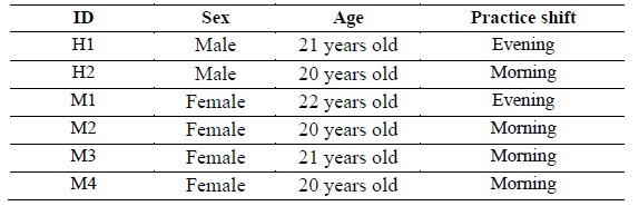 The research was conducted with the participation of five students (three women and two men), aged between 20 and 22 years, who were in their fourth semester of the bachelor’s degree in nursing. All of them were undertaking their first clinical practice in a real setting, corresponding to the course Nursing in Pregnancy and Newborn Care, at a secondary-level healthcare institution located in the state of Campeche, Mexico, during the August-December 2024 period. The sampling was intentional,18) as participants were carefully and deliberately selected based on their potential to provide rich, in-depth, meaningful information related to the subject of study. Table 1 shows the sociodemographic data of the participants.