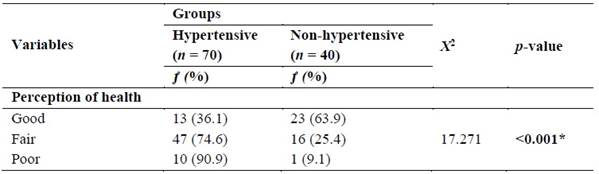 We observed a higher proportion of older individuals who perceive their health as poor and hypertensive. This can be explained by the fact that older individuals who perceive their health as poor often deal with multiple medical conditions, including SAH, which frequently coexists with other chronic diseases such as diabetes, heart and kidney diseases. According to Rodrigues et al., 23 this accumulation of medical conditions can contribute to a negative perception of health. Moreover, SAH can significantly impact the quality of life, causing symptoms such as fatigue, headaches, dizziness, and difficulty concentrating. These symptoms can influence the health perception of older individuals, especially if they are not receiving adequate treatment or are facing challenges in blood pressure control. 5 Uncontrolled SAH can also lead to severe complications such as stroke and heart disease, which in turn can result in functional limitations and reduced ability to perform daily activities. 15 These limitations can negatively affect the health perception of older individuals, particularly if they are experiencing mobility difficulties or loss of autonomy.