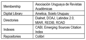In the last period the editorial team has proposed to shorten the editing times to a maximum of six months, and generate the conditions to support the publication in English, and the corresponding text and style editing. As per the reviewers, they will be required to integrate the National System of Researchers of the National Agency for Research and Innovation of Uruguay (ANII in Spanish), and to meet specific goals in the monitoring of their evaluation task. It is also expected that ANII will maintain the journal's rating and that the requirements to enter SCOPUS will be met.